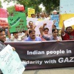नई दिल्ली, 13 जुलाई 2014। गाज़ा के आम नागरिकों पर जारी इज़रायल के हमलों को बेगुनाहों का क़त्लेआम करार देते हुए आम नागरिकों, बुद्धिजीवियों, कलाकारों, छात्रों-युवाओं, महिलाओं और सामाजिक कार्यकर्ताओं ने ‘इंडियन पीपुल इन सॉलिडैरिटी विद गाजा’ (गाजा के पक्ष में एकजुट भारतीय जन) के बैनर तले 13 जुलाई से लेकर 18 जुलाई तक देश के अलग-अलग हिस्सों में विरोध-प्रदर्शन किए, पर्चे बांटे और साइकिल रैली निकाली। इसके अलावा अन्य संंगठनों ने भी विरोध-प्रदर्शन करके अपने गुस्से को इज़हार किया और जियनवादी-साम्राज्यवाद की पुरजोर निंदा की। 14 जुलाई जेएनयू के छात्रों और ‘इंडियन पीपुल इन सॉलिडैरिटी विद गाजा’ के कार्यकर्ताओं पर दिल्ली में पुलिस द्वारा लाठीचार्ज किया गया और उन्हें कई घंटे हिरासत में रखा।
