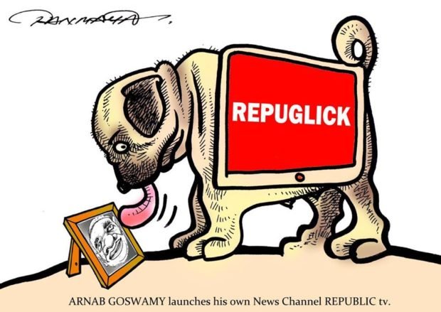 रिपब्लिक टीवी लाँच के दौरान तन्‍मय त्‍यागी द्वारा बनाया गया कार्टून